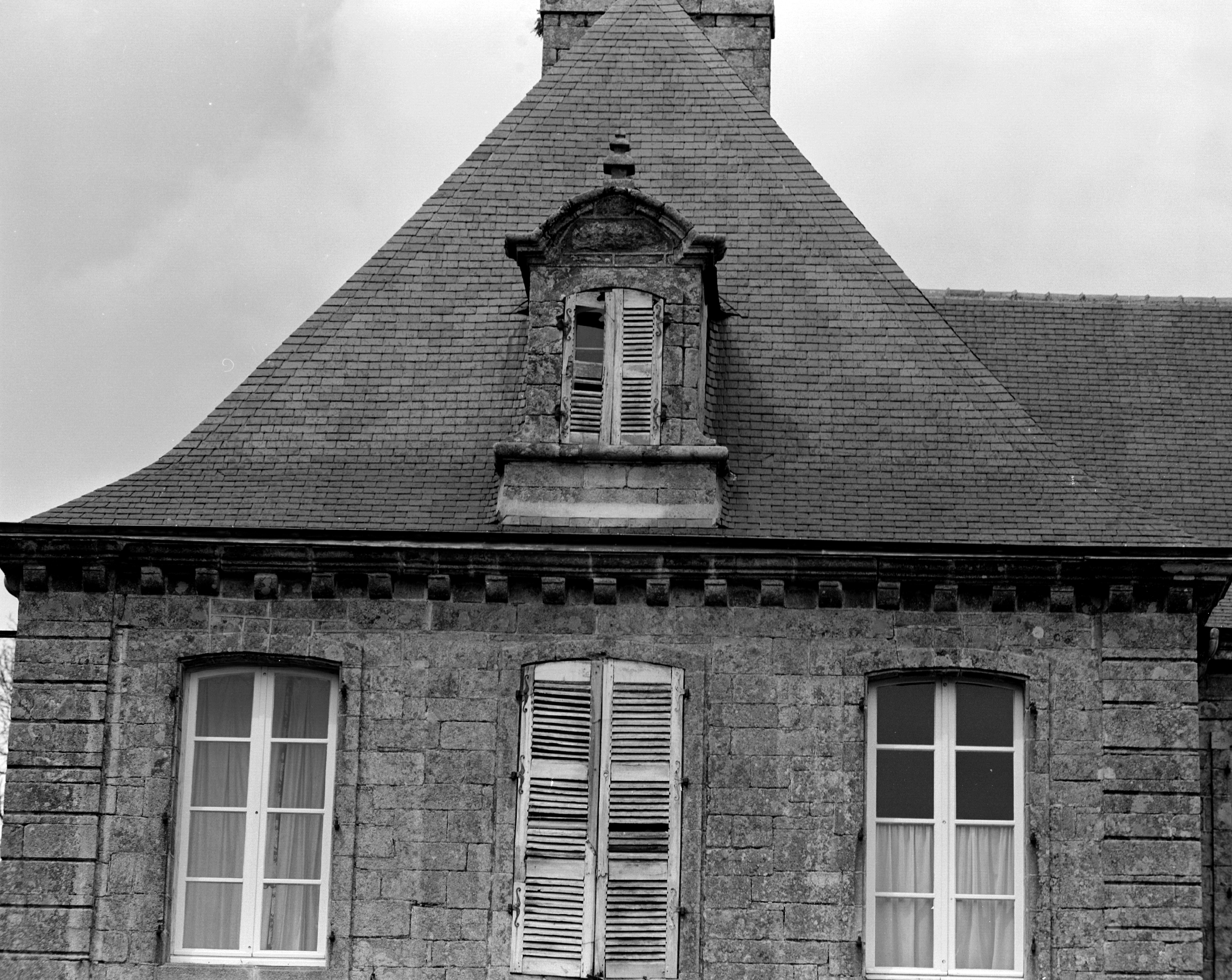 Elévation sud, aile gauche, lucarne.Immatriculation
