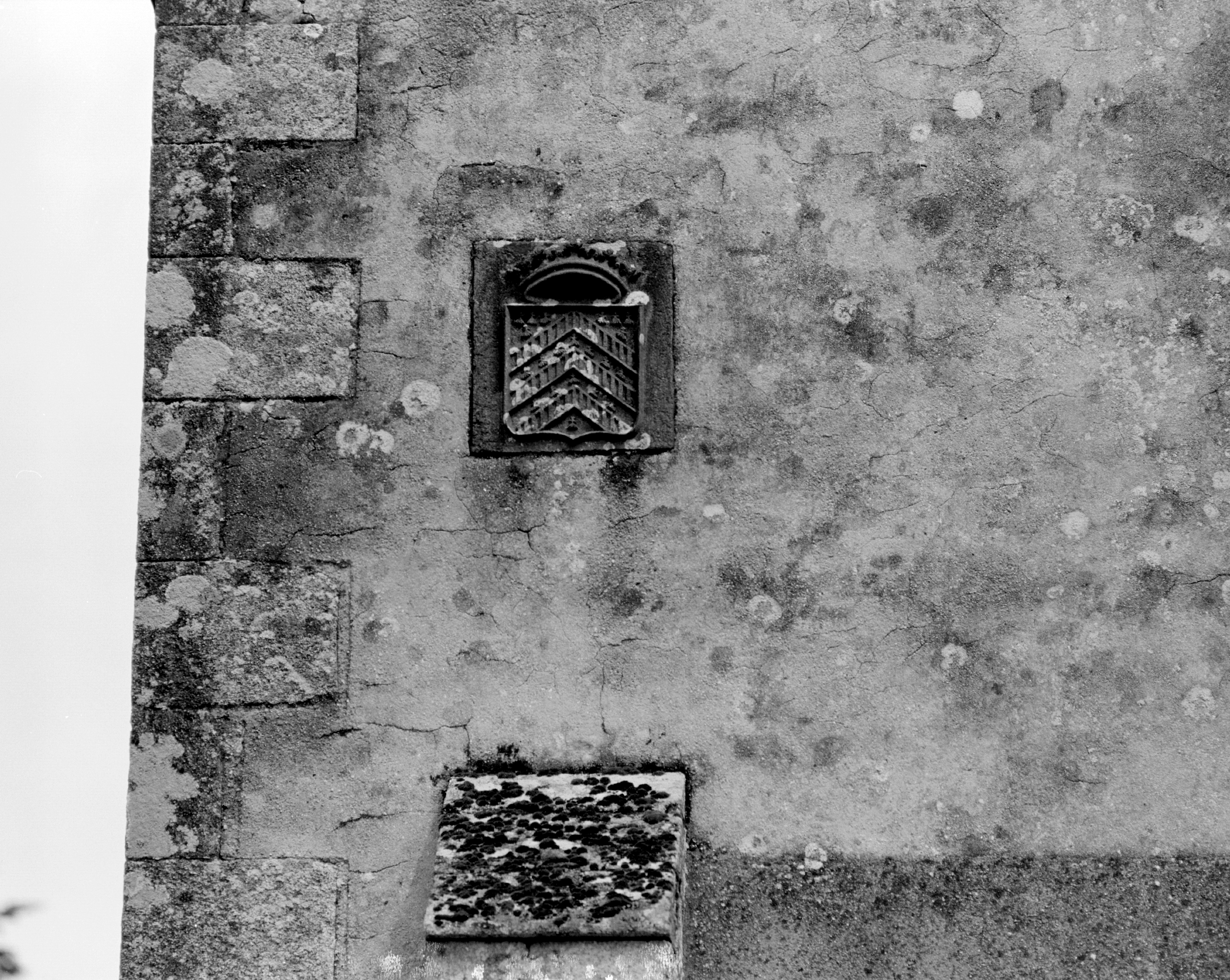 Chapelle, élévation ouest, blason.Immatriculation