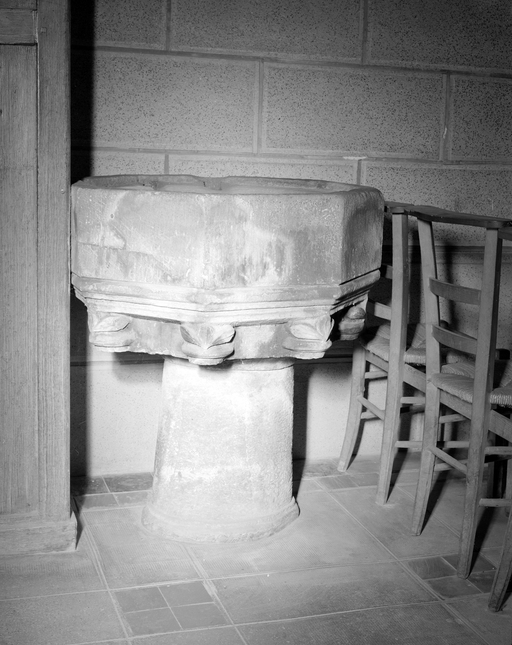 Vue générale du bénitier du bas-côté nord.Immatriculation