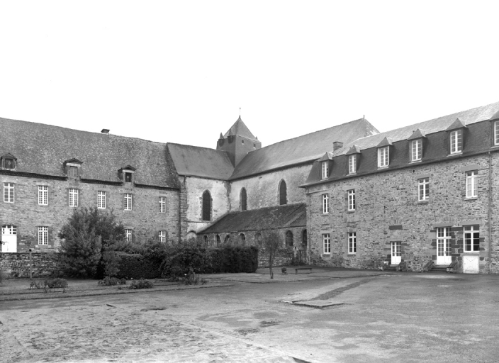 Abbaye de chanoines réguliers de Saint Augustin, actuellement église paroissiale Notre Dame, presbytère et mairie (Paimpont),