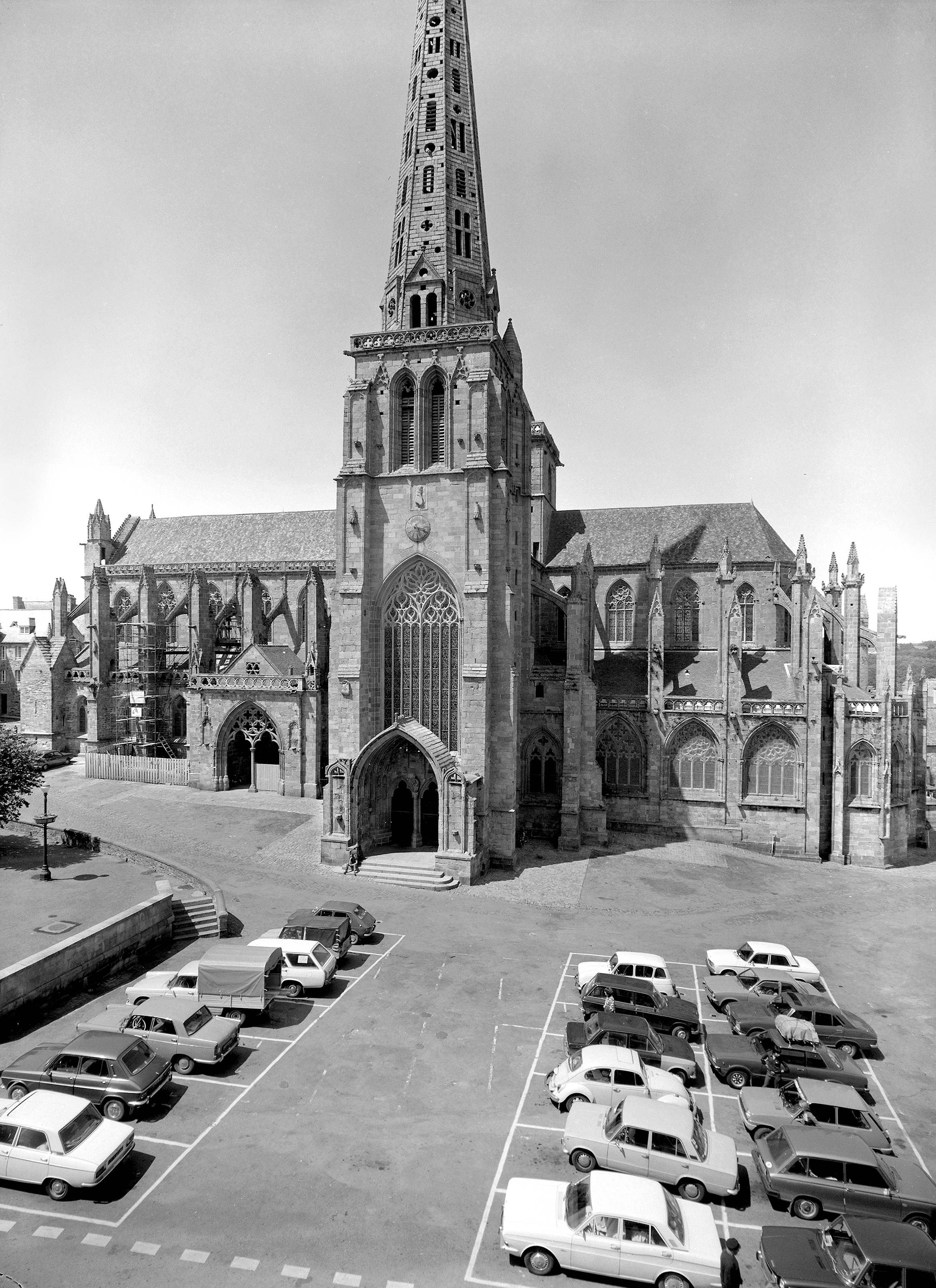 Vue générale sud, 1983 : la cathédrale Saint-Tugdual et la place du MartrayImmatriculation
