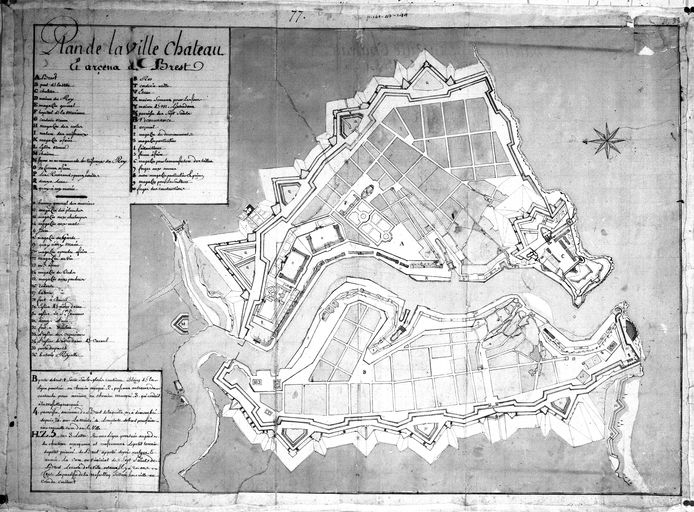 Plan de la ville, château et arsenal de Brest, 1ère moitié 18e siècleImmatriculation