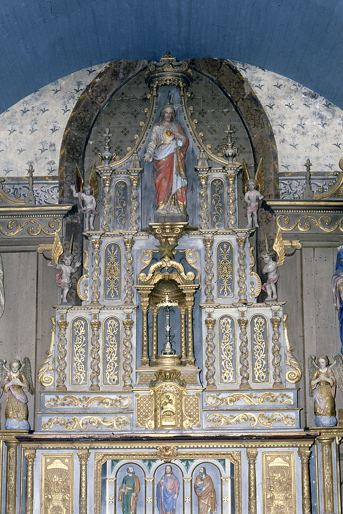 Autel, tabernacle, exposition, gradins d'autel (2) (maître-autel, autel tombeau, tabernacle architecturé), dit du Sacré-Coeur, (anciennement autel retable numéro 1), église paroissiale Saint-Vinoc (Plouhinec-29),