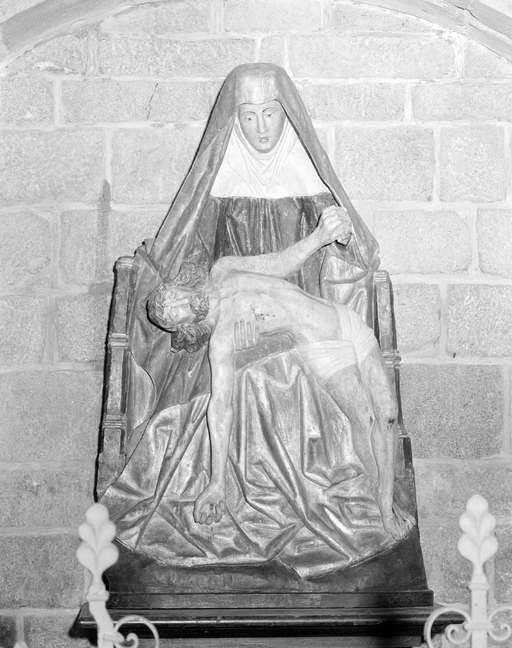 Groupe sculpté (d'applique) : Vierge de Pitié, église paroissiale Notre-Dame-de-Roscudon (Pont-Croix),