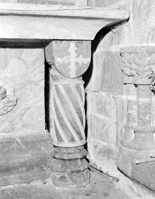 Autel, retable, gradins d'autel (2) (autel secondaire, autel table, retable architecturé à niche), de saint Joseph, (anciennement retable numéro 3), église paroissiale Notre-Dame-de-Roscudon (Pont-Croix),