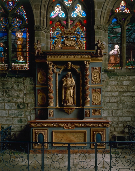 Autel, retable (autel secondaire, autel tombeau, retable architecturé à niche), de sainte Anne, (anciennement retable numéro 1), église paroissiale Notre-Dame-de-Roscudon (Pont-Croix),