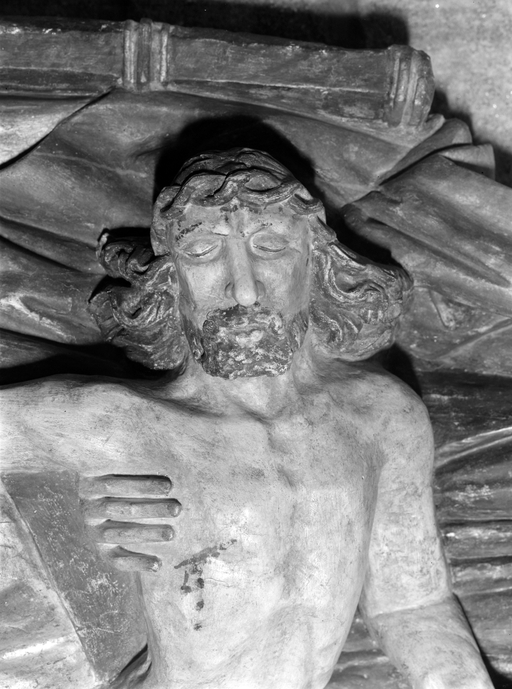 Groupe sculpté (d'applique) : Vierge de Pitié, église paroissiale Notre-Dame-de-Roscudon (Pont-Croix),