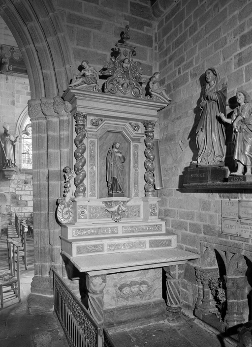 Autel, retable, gradins d'autel (2) (autel secondaire, autel table, retable architecturé à niche), de saint Joseph, (anciennement retable numéro 3), église paroissiale Notre-Dame-de-Roscudon (Pont-Croix),