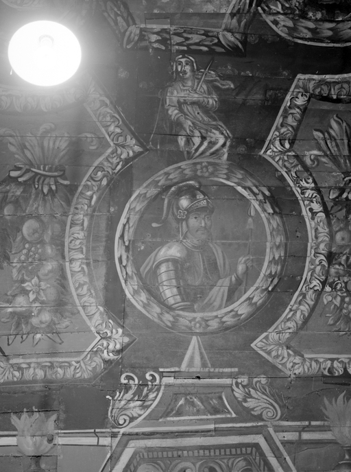 Ensemble de peintures de plafond A, nef sud, médaillon 12 : guerrier.Immatriculation