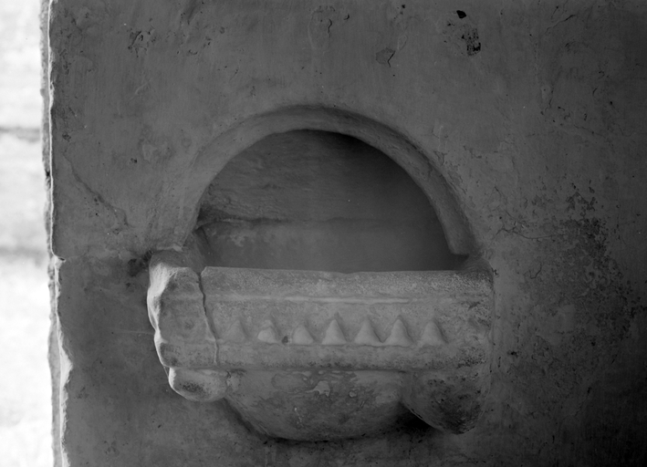 Bras sud, mur ouest : petit bénitier.Immatriculation