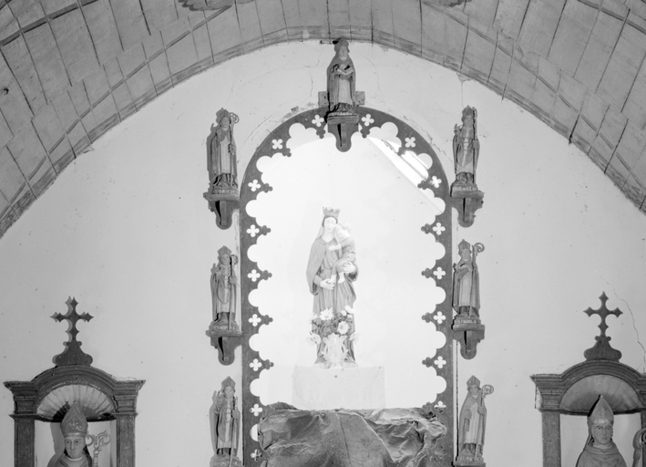 Statues (7, statuettes) : saint Corentin, saint Tugdual, saint Brieuc, saint Samson, saint Pol de Léon, saint Malo, saint Patern, chapelle Saint-Mérec (Kergrist),