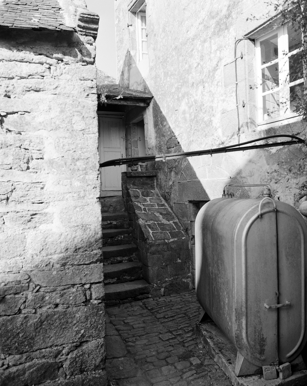 Escalier extérieure entre le logis et l'ancienne écurie. (1984)Immatriculation