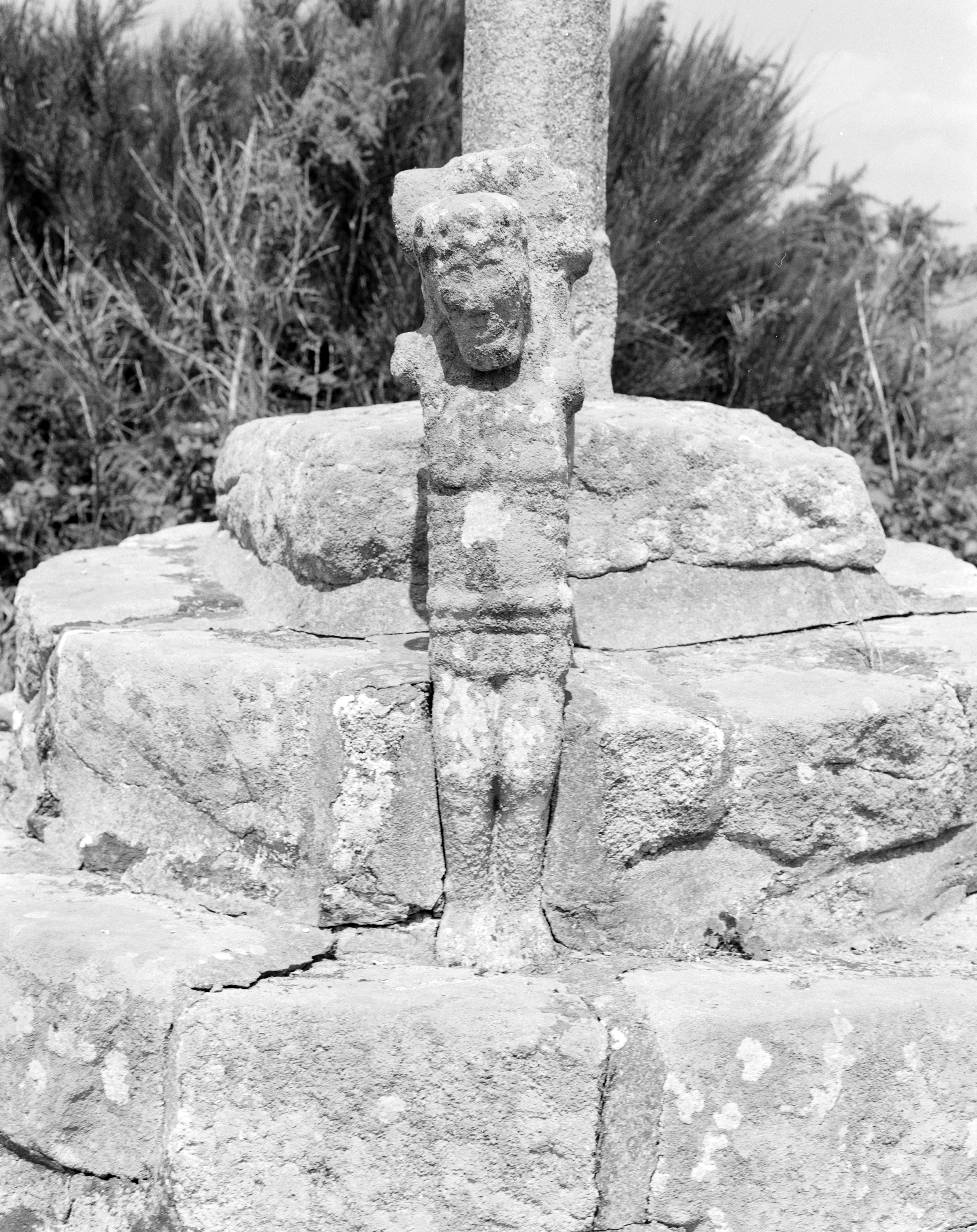 Détail du croisillon encastré dans la base de la croix : crucifix. (1984)Immatriculation