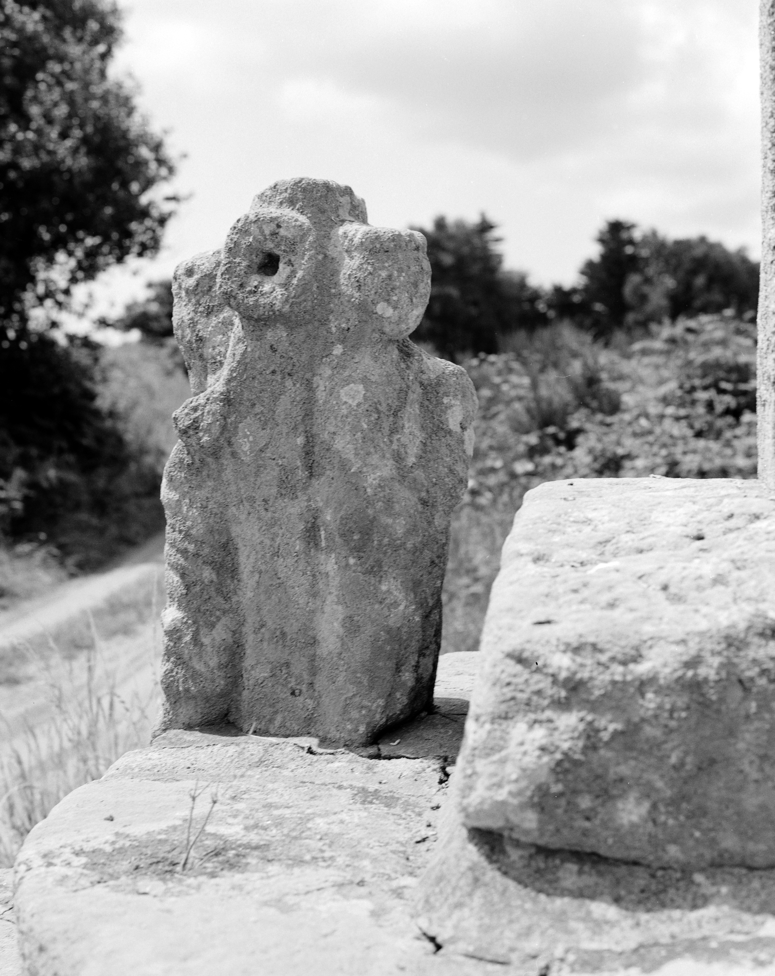 Détail du croisillon encastré dans la base de la croix : revers, Vierge à l'Enfant. (1984)Immatriculation