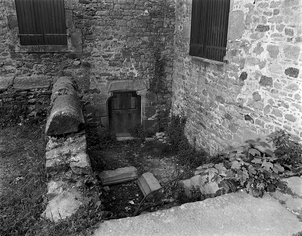 Aile sud-est, élévation nord, escalier menant au douve et porte de caveImmatriculation