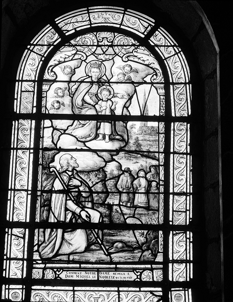 Verrière (verrière figurée) : Apparition de la Vierge (1), église paroissiale Saint-Collodan (Plogoff),