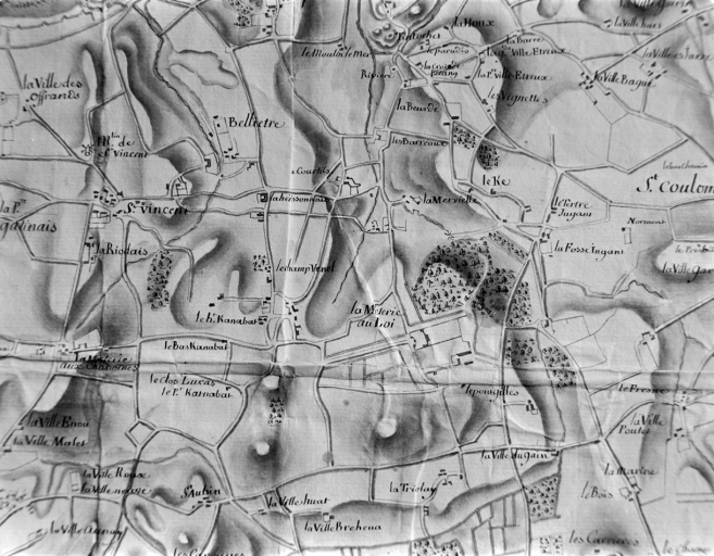 Entre 'Bellietre' et Saint-Vincent, Blanguenon sur une carte dressée vers 1780Immatriculation