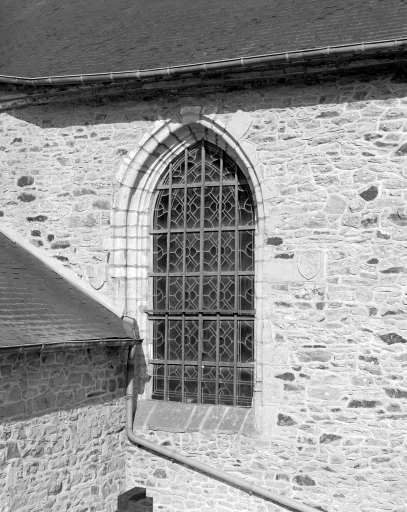 Mur sud, détail de la fenêtre du choeur.Immatriculation