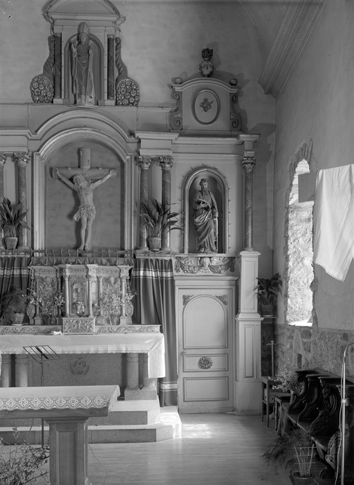 Autel, croix, retable, tabernacle (maître-autel, tabernacle à ailes, tabernacle architecturé), église paroissiale Saint-Pierre (Taillis),