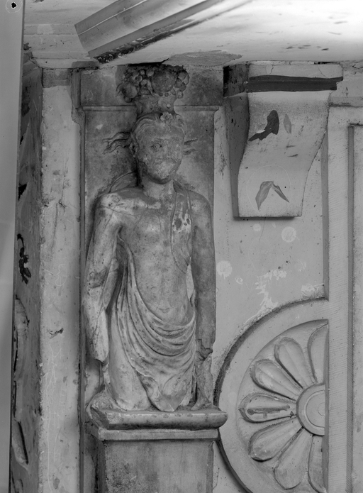 Tombeau à deux enfeux superposés, vue du premier niveau dans la niche, détail d'un second bas-relief en marbre.Immatriculation