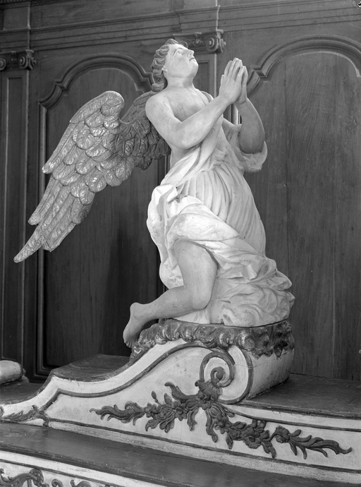 Autel, devant d'autel, gradin d'autel, tabernacle, exposition, statues (2) (maître-autel, tabernacle à dais d'exposition), ancienne collégiale, actuellement église Sainte-Marie-Madeleine (Champeaux),