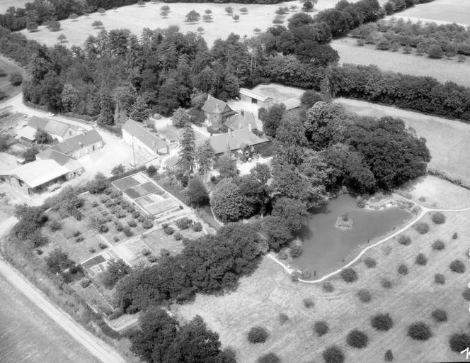 Vue aérienne des manoirs vers le nord-est.Immatriculation