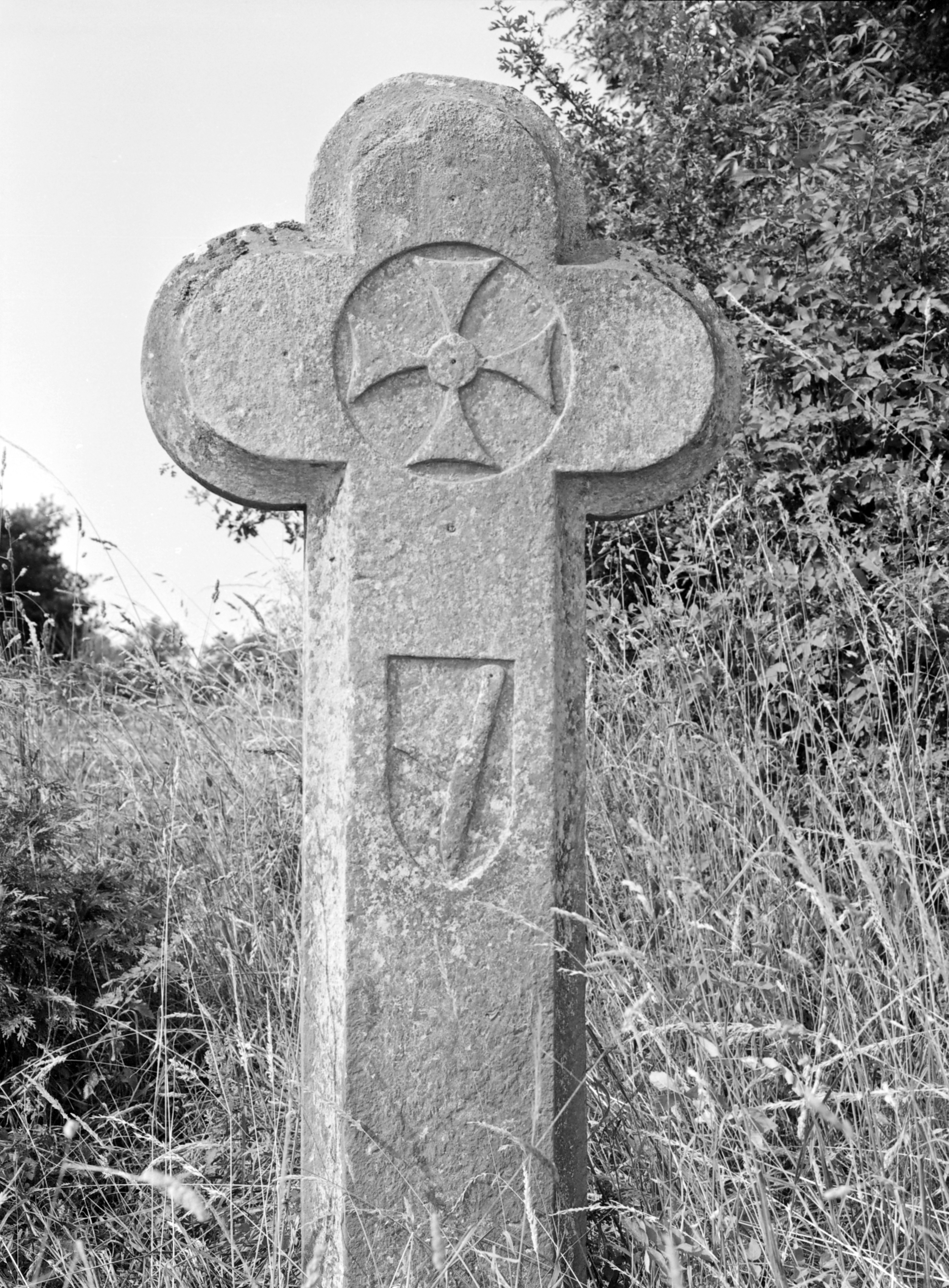Croix de chemin : décor sculpté en réserve (état en 1984)Immatriculation