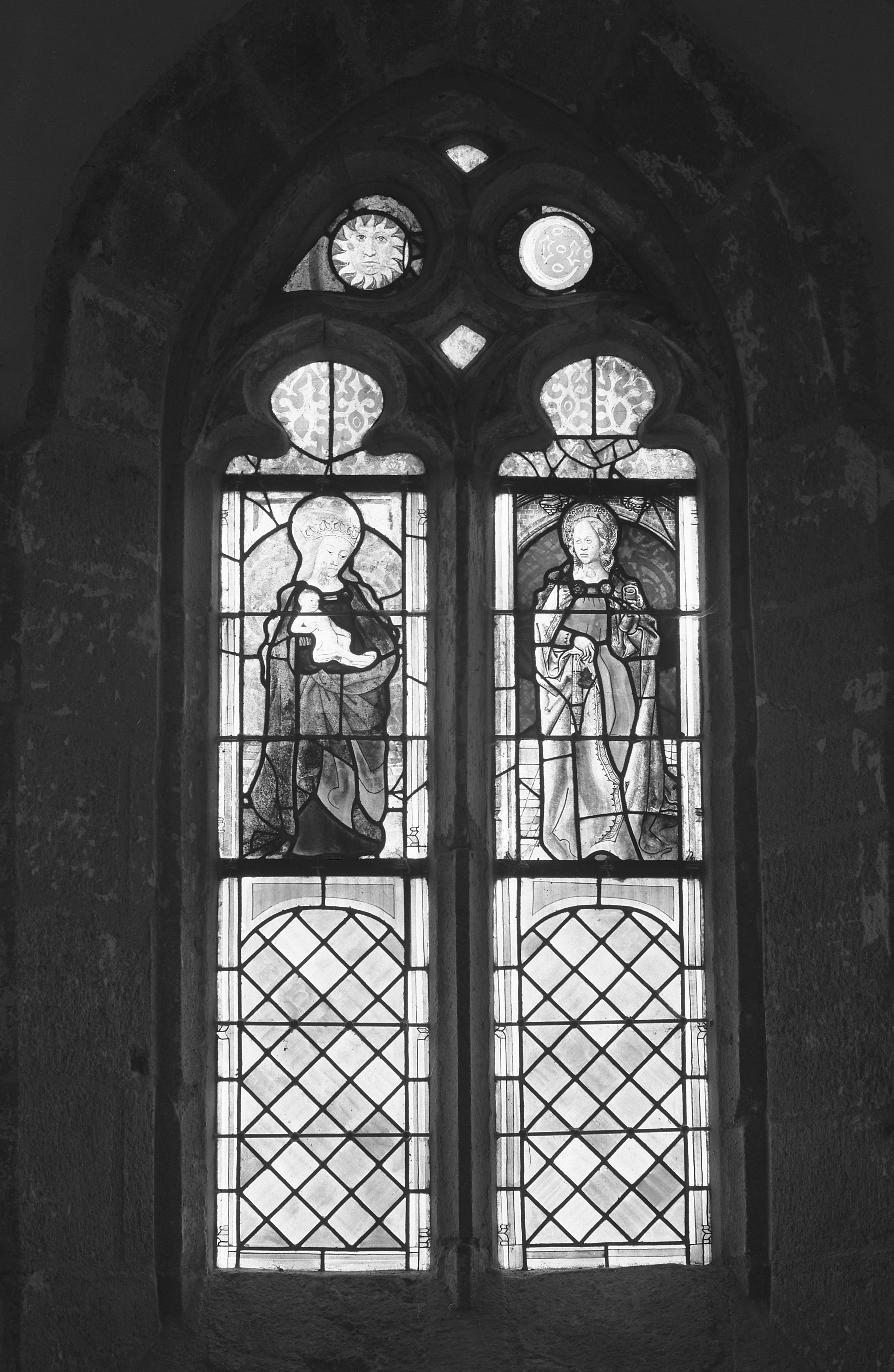 Verrière de la baie 1 : Vierge à l'Enfant et sainte non identifiée (état en 1984)Immatriculation