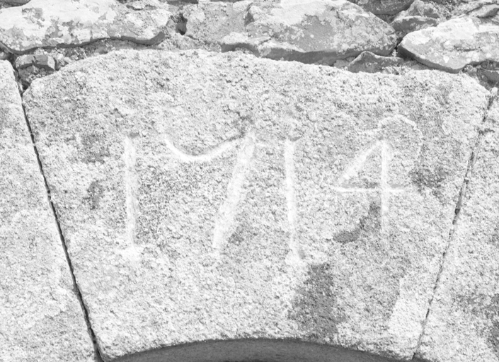 Chapelle : date 1714 gravée sur la clé de voûte de la porte (état en 1984)Immatriculation