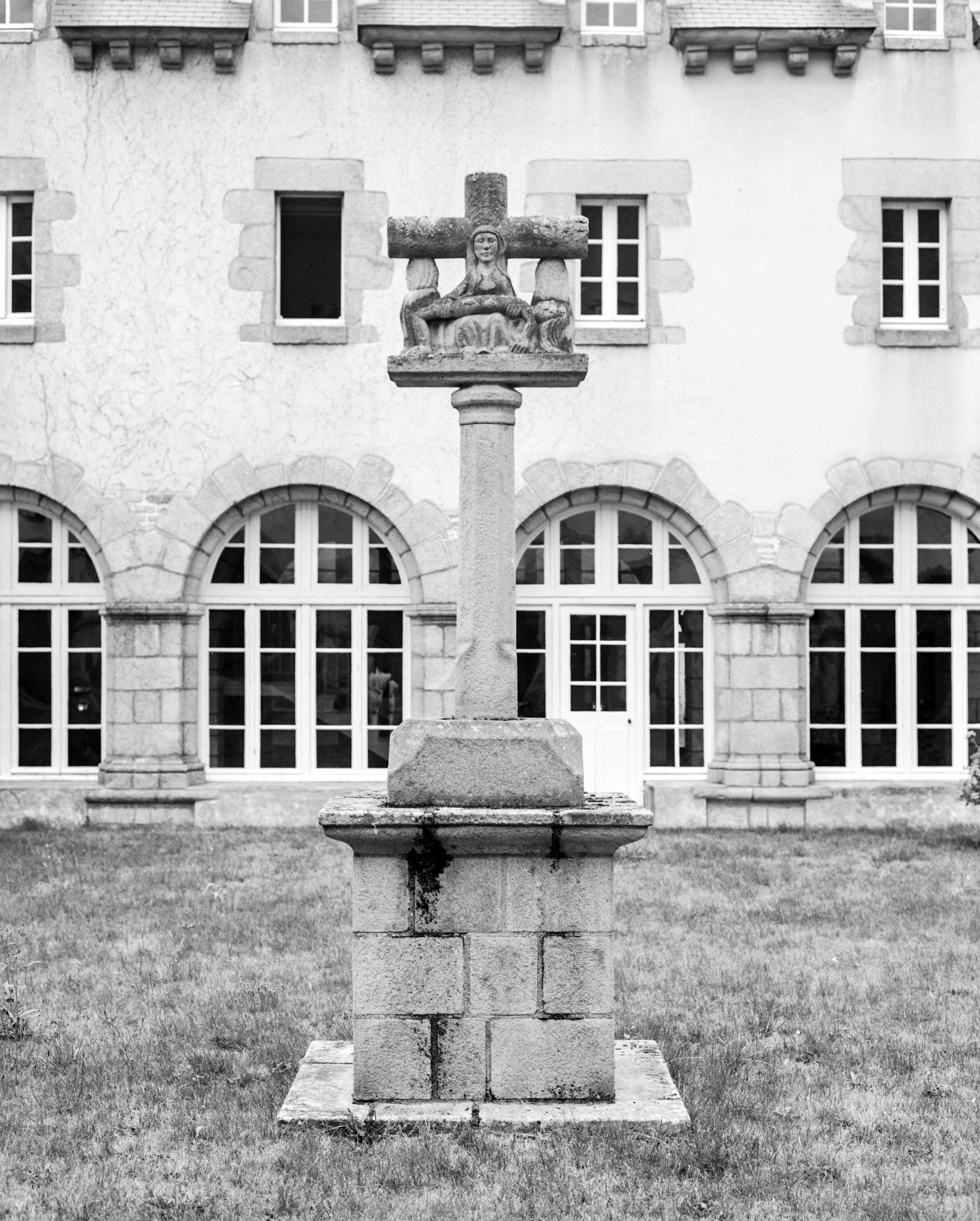 Couvent, croix monumentale au centre du cloître : face portant la Vierge de pitié (état en 1984)Immatriculation