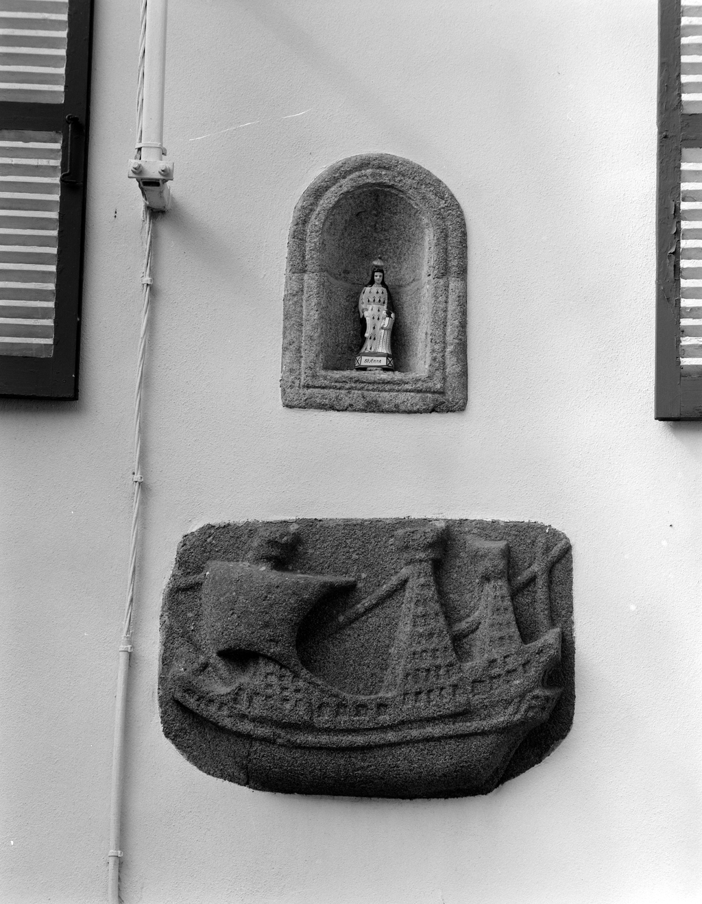 26 rue Amiral Courbet, Maison : détail du bateau sculpté sur le murImmatriculation