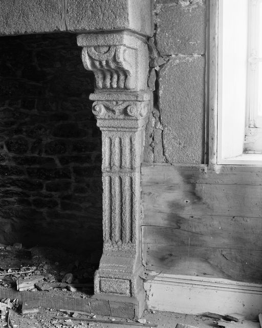 Vue de détail de l'un des piédroits de la cheminée située au premier étage (état en 1985)Immatriculation