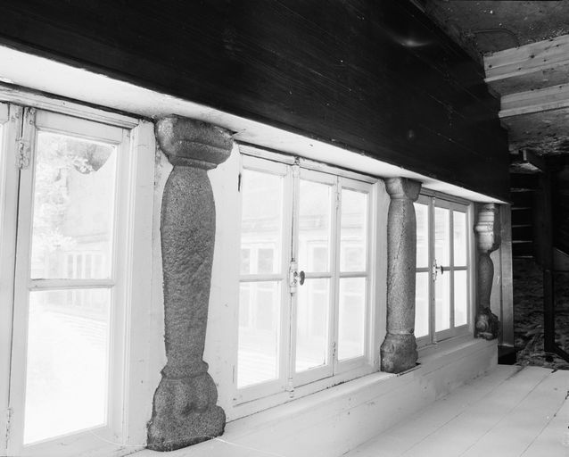 Vue générale prise de la porte d'entrée en enfilade : galerie et colonettes (état en 1985)Immatriculation
