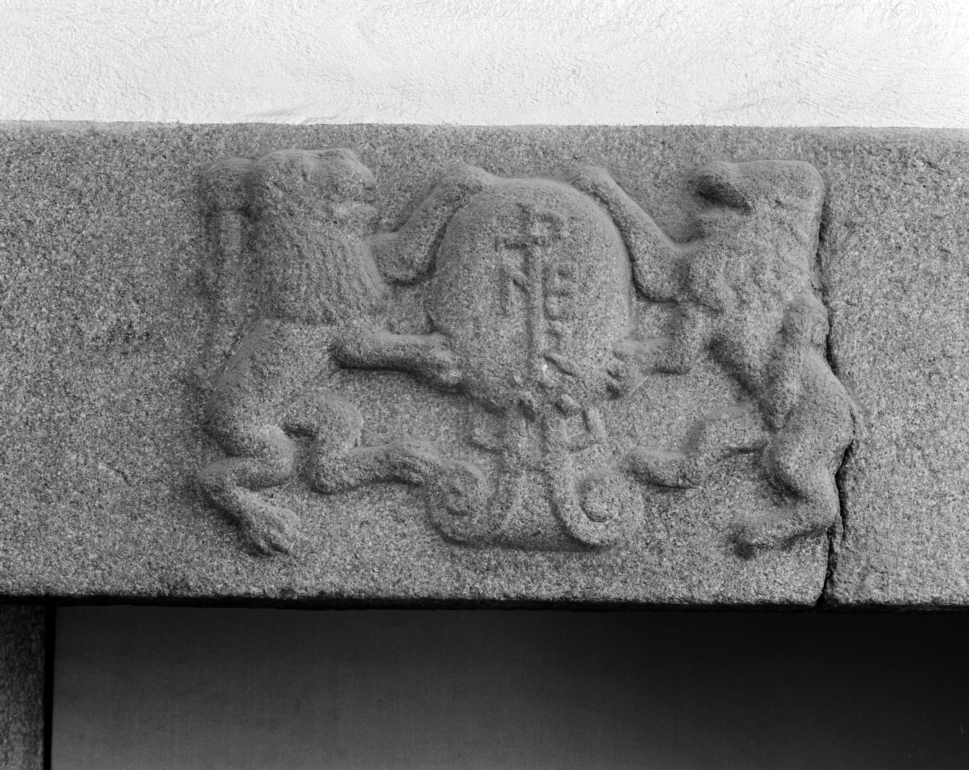 15 rue Gambetta, rez-de-chaussée, détail du blason de marchand de la cheminéeImmatriculation