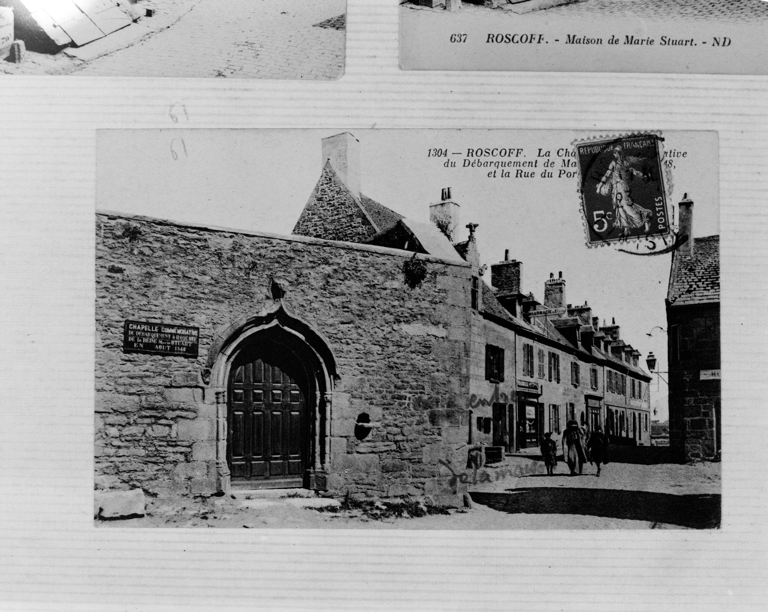 Galerie Morgane : La chapelle commémorative du Débarquement de Roscoff et la rue du Port. Coll. N.D.Immatriculation