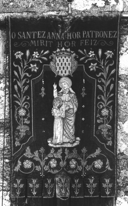 Bannière (anciennement numéro 4) : Sainte Famille, Education de la Vierge, dite de la sainte Famille, église paroissiale Saint-Goulven (Goulien),