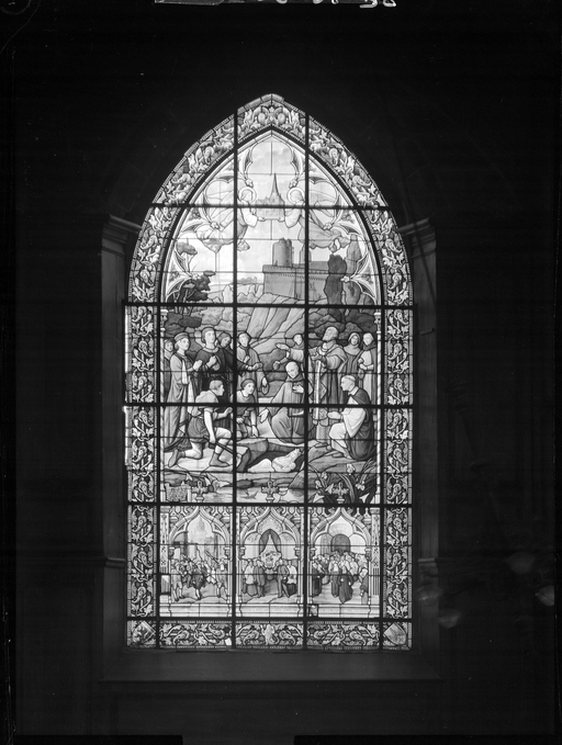 Verrière : découverte de la statue de Notre-Dame des marais au pied du château de Fougères, procession de notre-dame des marais à Fougères, mission de 1900 à Fougères (6), église paroissiale Saint-Sulpice (Fougères),