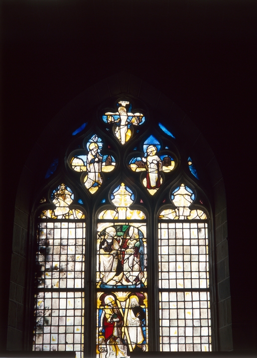 Verrière (verrière hagiographique) (baie 3), ancienne collégiale, actuellement église Sainte-Marie-Madeleine (Champeaux),