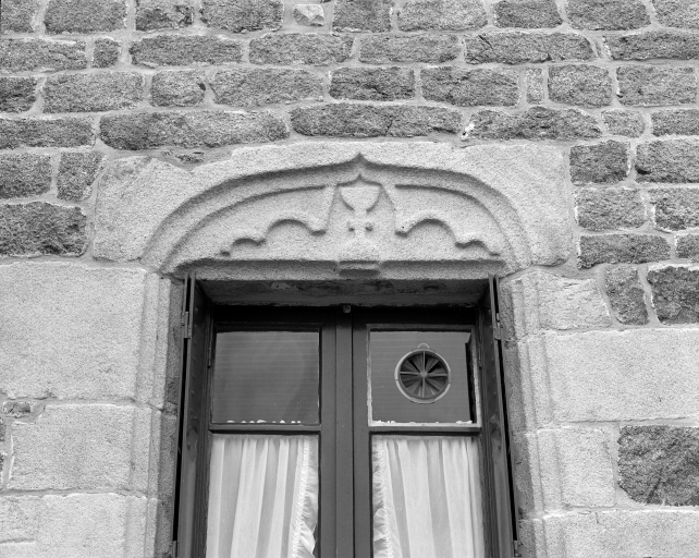 Linteau avec calice : vue de détail.Immatriculation