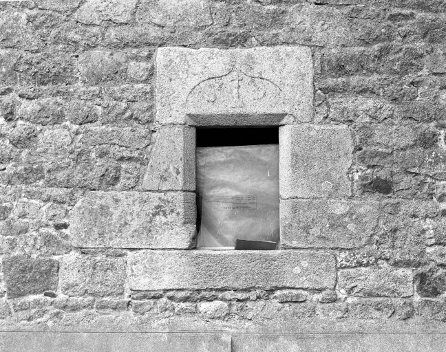 Dépendances, baie avec croix, vue de détail.Immatriculation