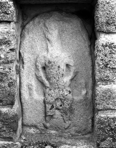 Stéle dans le cimetière, vue de détail.Immatriculation