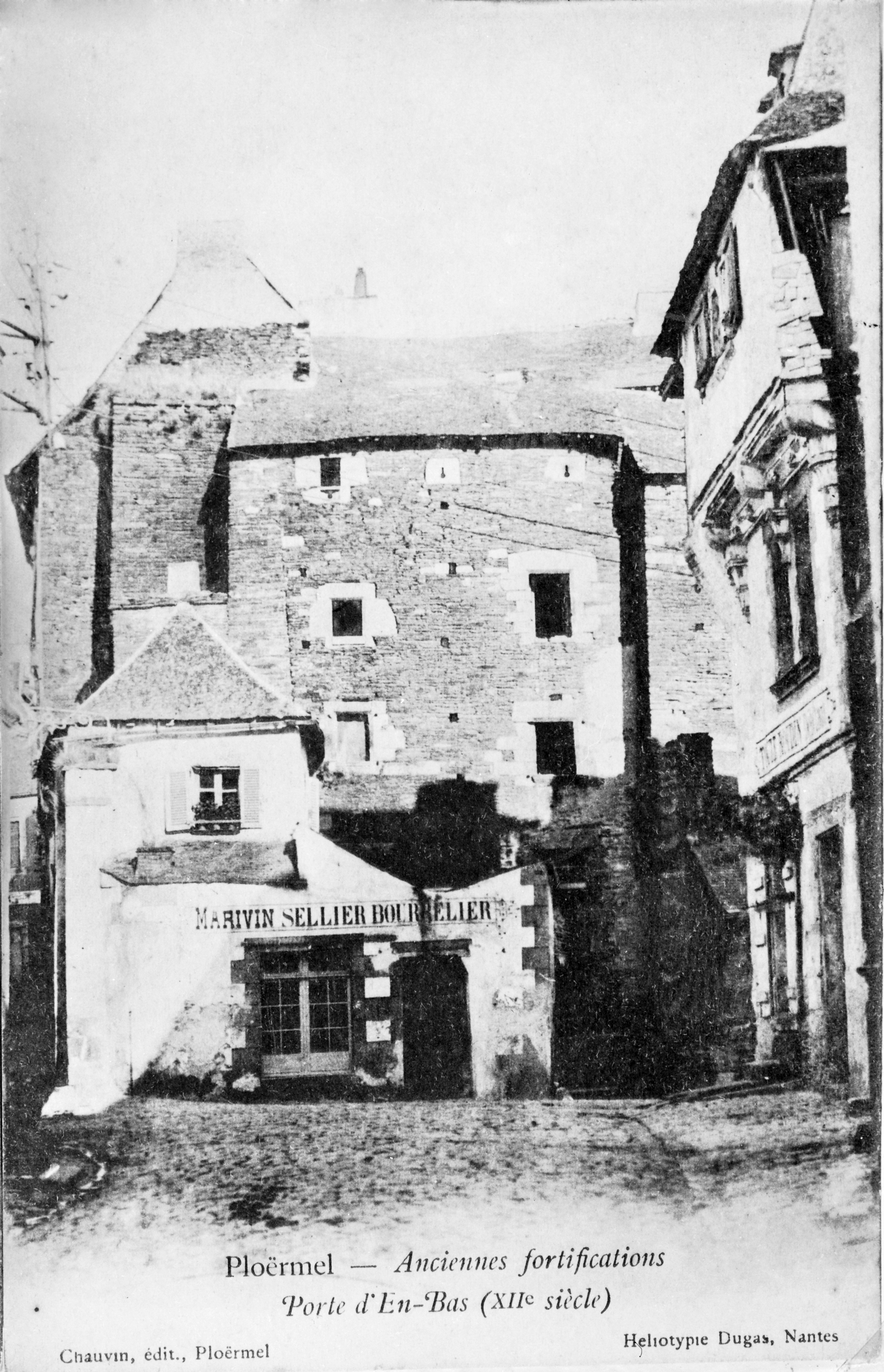 Ploërmel - Anciennes fortifications. Porte d'En-bas (XIIe siècle). Carte postale, Ploërmel : Chauvin, édit., [1er quart 20e siècle].