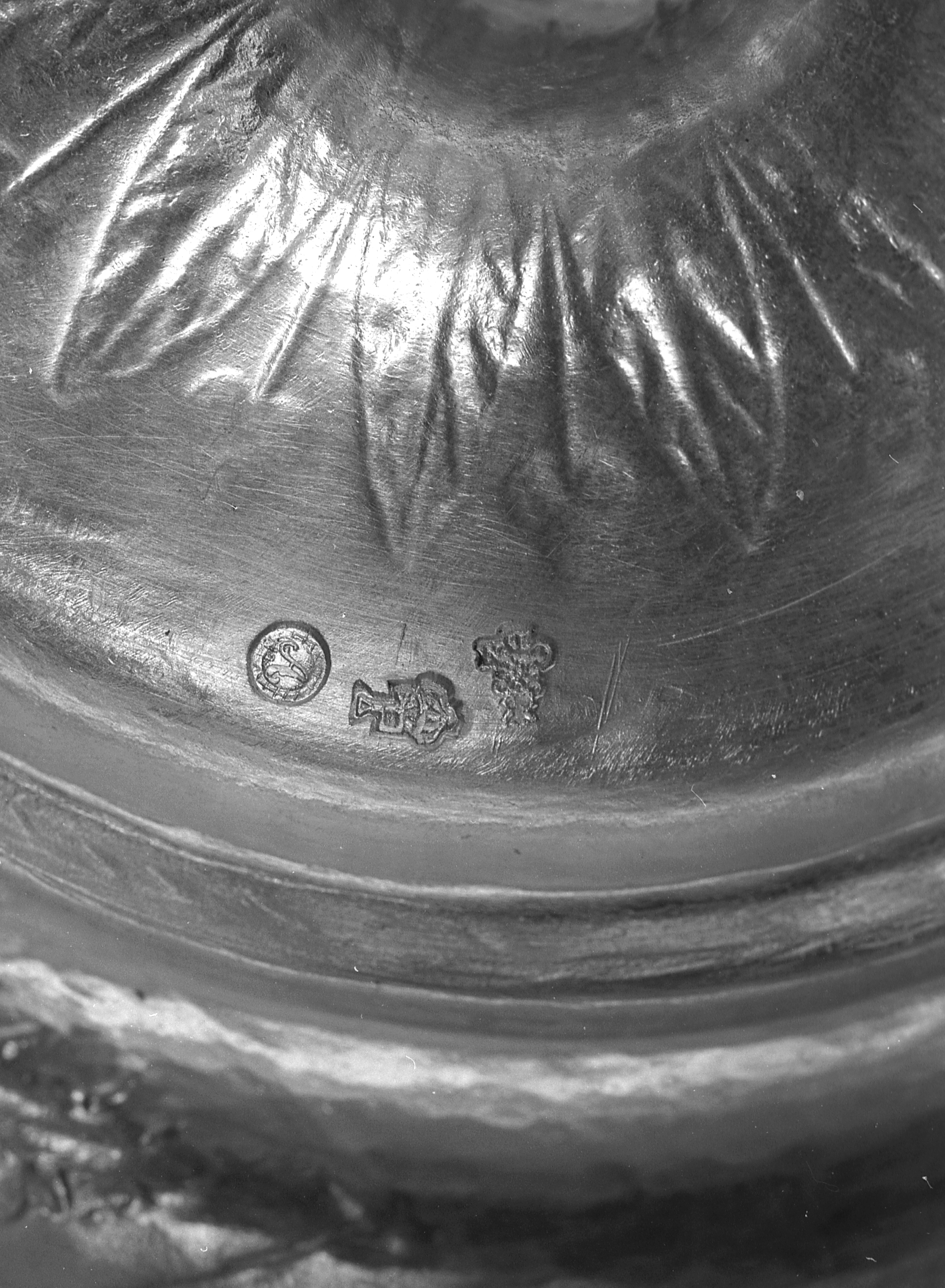 Calice et patène : les poinçons sur le pied du calice (état en 1985)Immatriculation