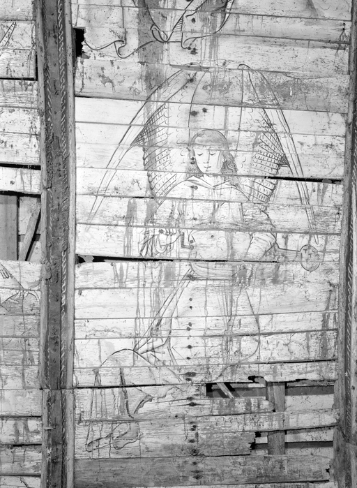 Peintures (8) : vie de sainte Catherine, anges, saint Pierre, saint Jean, chapelle Notre-Dame-de-Carmes (Neulliac),