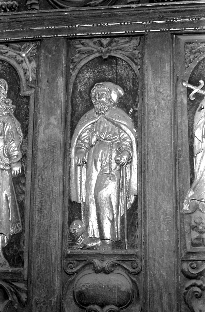 Soubassement du grand buffet, bas-reliefs sculptés et dorés, saint Antoine l'Ermite.Immatriculation