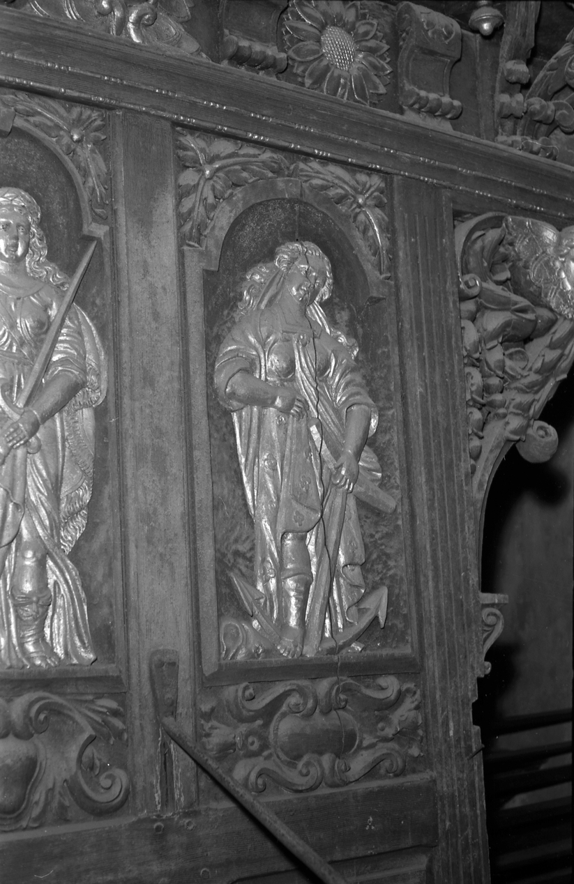 Soubassement du grand buffet, bas-reliefs sculptés et dorés, l'Espérance.Immatriculation