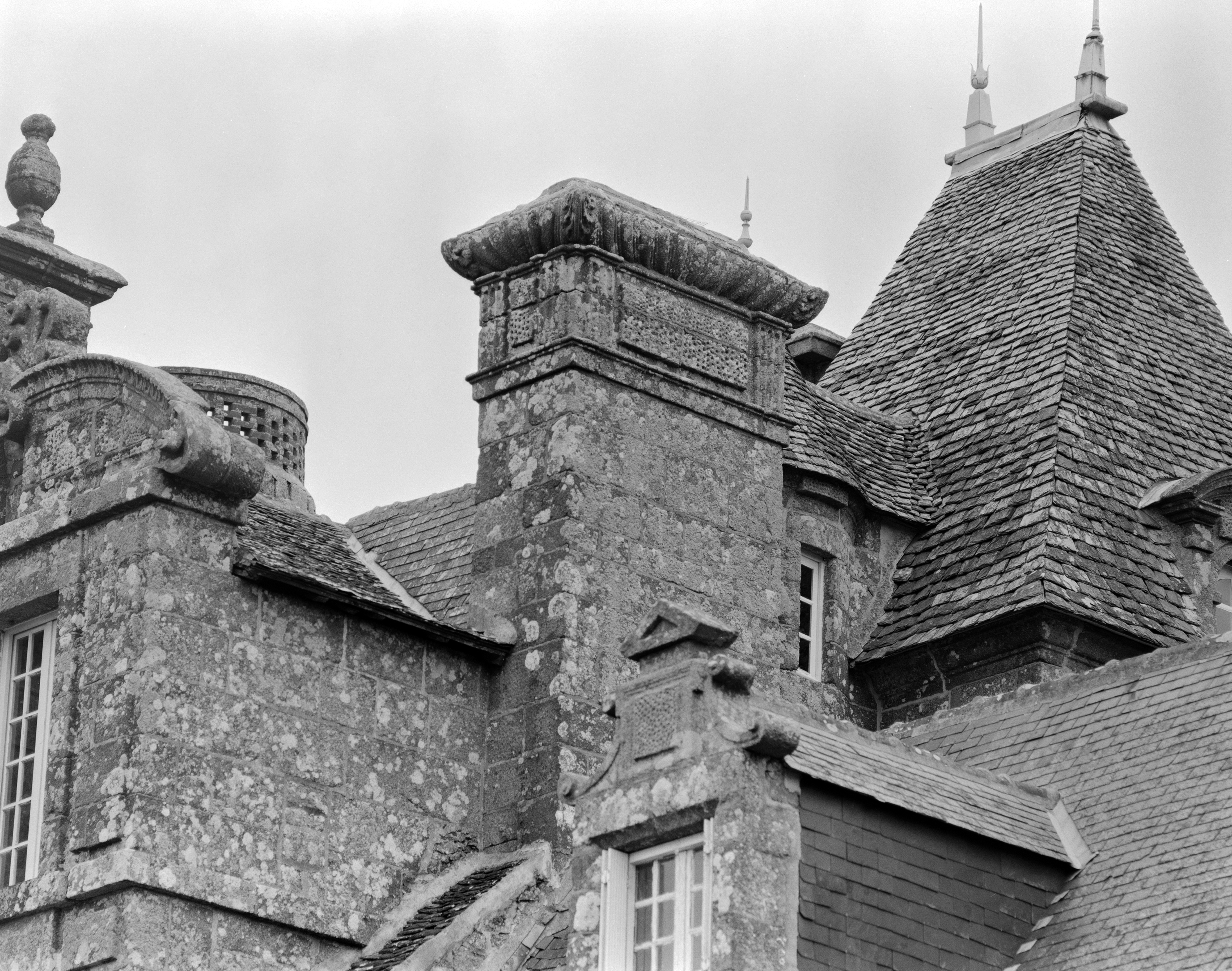 Château, élévation ouest : souche de cheminée à décor (état en 1986)Immatriculation