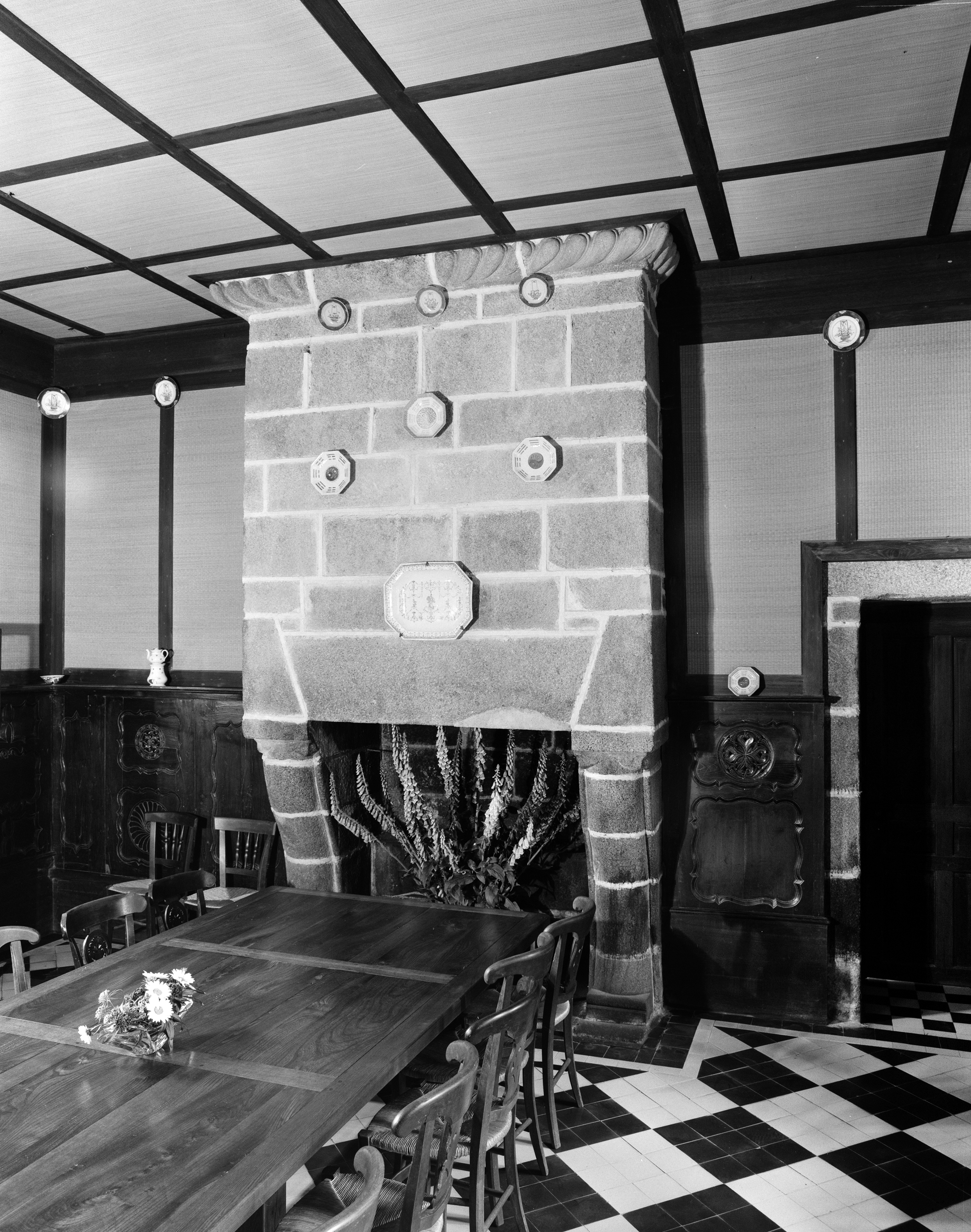 Château, rez-de-chaussée, pièce 5 : la cheminée sur le mur est (état en 1986)Immatriculation