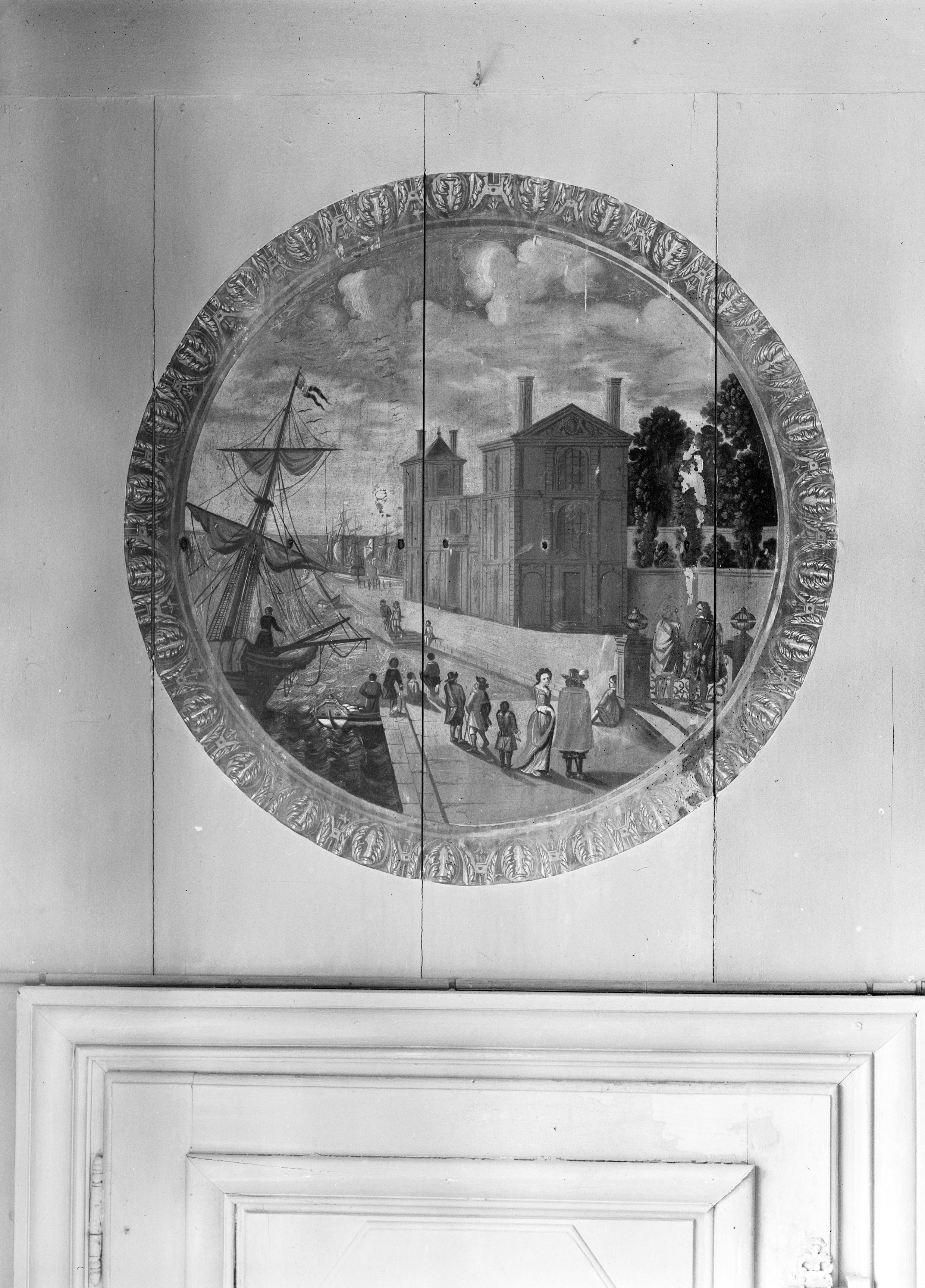 Dessus-de-porte, porte ouest : Paysage avec un port (état en 1986)Immatriculation