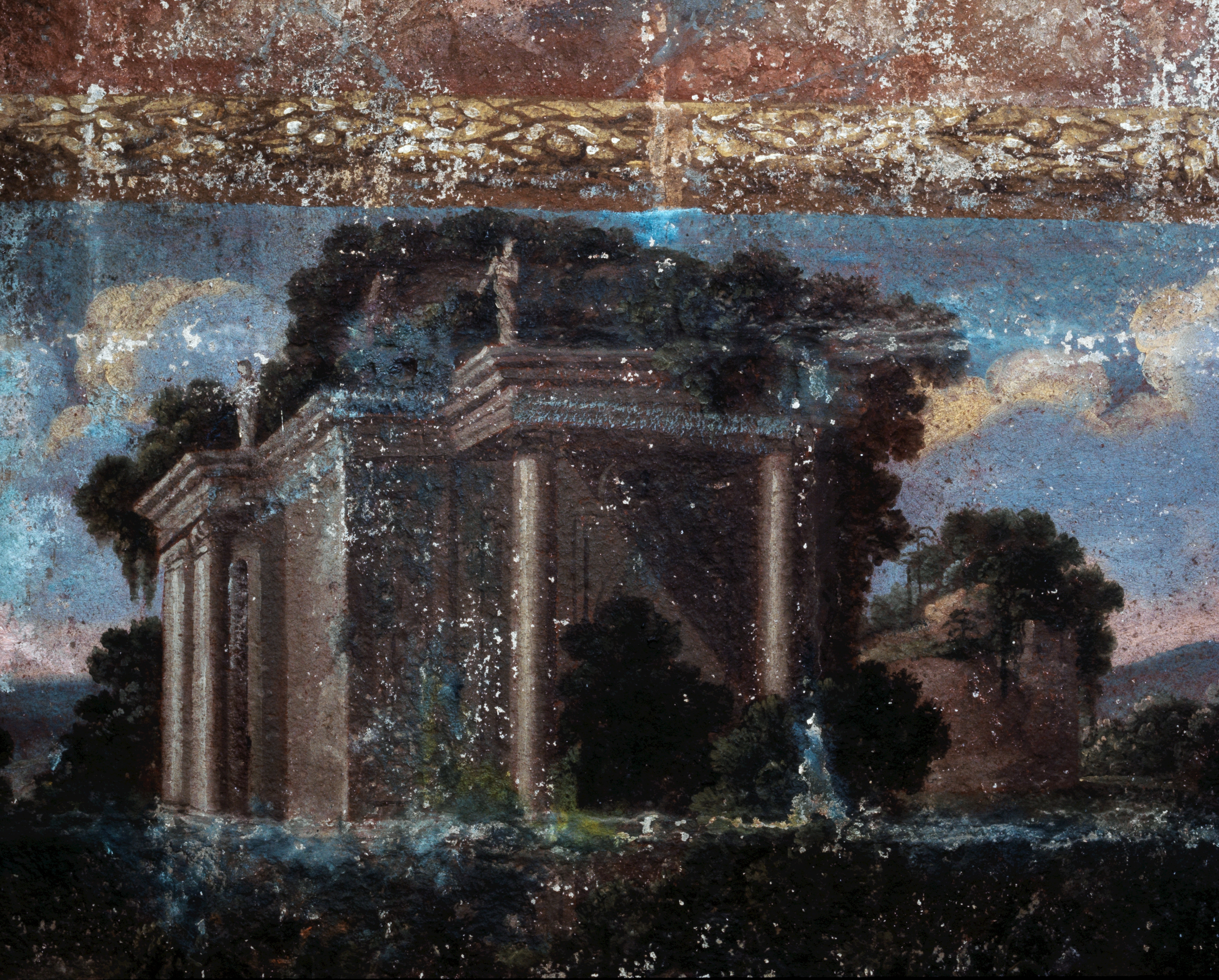 Peinture monumentale 3 (trumeau), Paysage avec un temple : le temple (état en 1986)Immatriculation